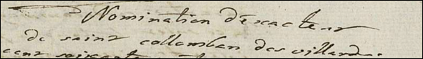 « L’an 1764 et le 29 août a Saint Collomban des Villards dans la chambre de communauté, par devant moy notaire collégié, secrétaire chattelain soussigné, et en présence des témoins nommés, se sont personnellement establis et assemblée honorable Claude feu Michel Mollaret syndyc, Claude feu Collomban Paret-Buttaz, Joseph fils émancipé de Pierre Boson, Michel feu François Lambert, Jean-Pierre feu François Rostaing-Capaillant, Collomban feu Jean-Baptiste Long, et Jean-François feu Jean Sallier, conseillers, tous natifs habitants de Saint Collomban des Villards, lesquels tant a leurs noms que du général de la communauté dernièrement assemblé pour recevoir la mise de ceux qui voudraient se charger de l’exaction de la taille et autres revenus de la parroisse, en suite de trois publications faites par moy secrétaire soussigné et ne sestant présenté dans la ditte assemblée qu’Antoine Cuinat dernier exacteur qui seul a fait mise un quatre moins un demy quart pour cent ce qui a été accepté par le syndyc et conseil et, a ces fins, ont étés nommés, élisent et nommes pour exacteur de la ditte communauté pour l’année courante le dit Antoine feu Jean-Louis Cuinat-Guerraz natif habitant de Saint Collomban des Villards dernier exacteur sous le gage de quatre moins un demy quart pour cent en forme de sa mise présent à la ditte charge acceptant et conditions qu’il se versera en la ditte charge en homme de bien et d’honneur…, ce qui sera porté par le cottet et autre rolles qui lui seront remis par moy secrétaire soussigné…, faire les payements et livrances entre les mains de qui sera ordoné, raportera quittance du sieur trésorier à la fin de l’année en faveur de la communauté a peine de tous dépends dommages intérets…, l’obligation de tous ses biens présents et avenirs avec clause de constitue et à la requete du dit Antoine Cuinat exacteur élu s’est établis en personne par devant moy notaire et témoins honorable Pierre feu Jean-Louis Cuinat-Guerraz natif et habitant de Saint Collomban des Villards… en tant que caution solidaire… de quoy acte requis accordé fait et prononcé en présence d’honorable Pierre Antoine feu Pierre Battallier natif et habitant de Saint Jean d’Arve et Balthazard feu Joseph Paret natif habitant de Saint Collomban des Villards témoins requis, les témoins ont déclarés ne scavoir signer. » (*)↩︎